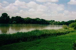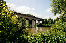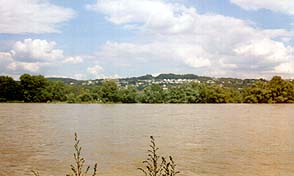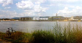 Stadt Bendorf kommt von rechts der Saynbach in den Rhein. Dicht unterhalb