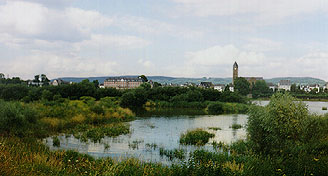 der nüchternen Mündung zeigt sich die Mühlhofener Hochofenhütte. Einige Kilometer
